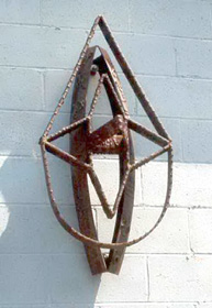 This piece represents the force of a goal and the opposite force of labor and obstacles that work counter to it. As a result of the two forces working against one another, sweat is produced. When the sun shines on the sweat the sunlight is reflected. |