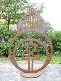 This piece shows the sprit of the three major religions: Judaism, Christianity and Islam.